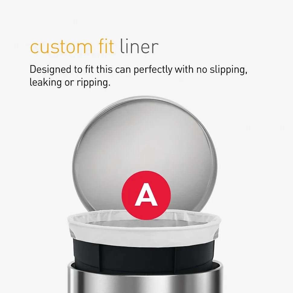 - 1.2-gallon capacity simplehuman Code A Custom Fit Trash Can Liners