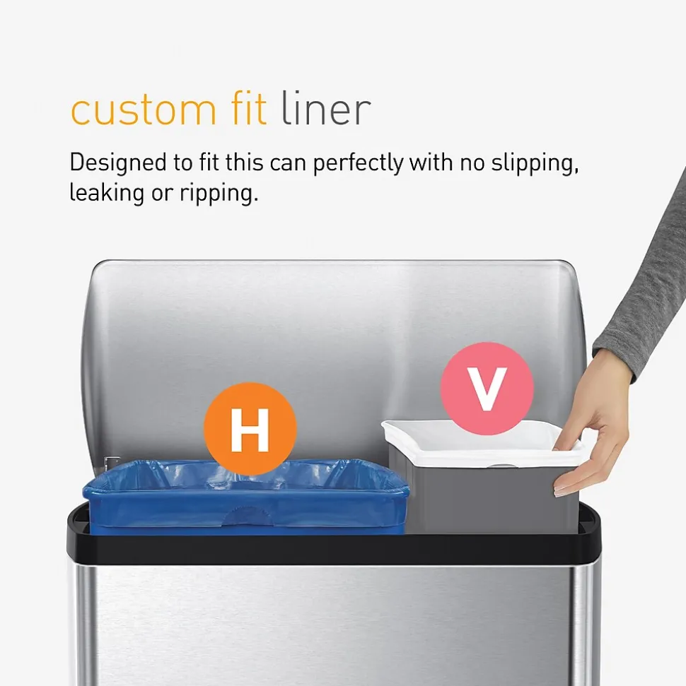 - simplehuman custom fit trash can liners are designed to fit each of our cans perfectly so there is no messy bag overhang or bunching — and they never slip. Extra-thick plastic and double-seam construction prevent rips and tears. Strong drawstring handles make the liners easy to lift, tie, and carry.