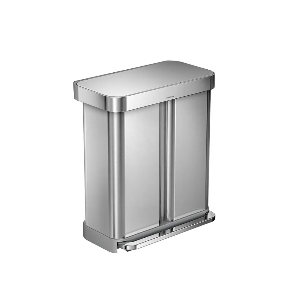 The simplehuman dual compartment stainless steel rectangular step can makes it easy to neatly sort your trash and recyclables in one convenient, space-efficient receptacle.