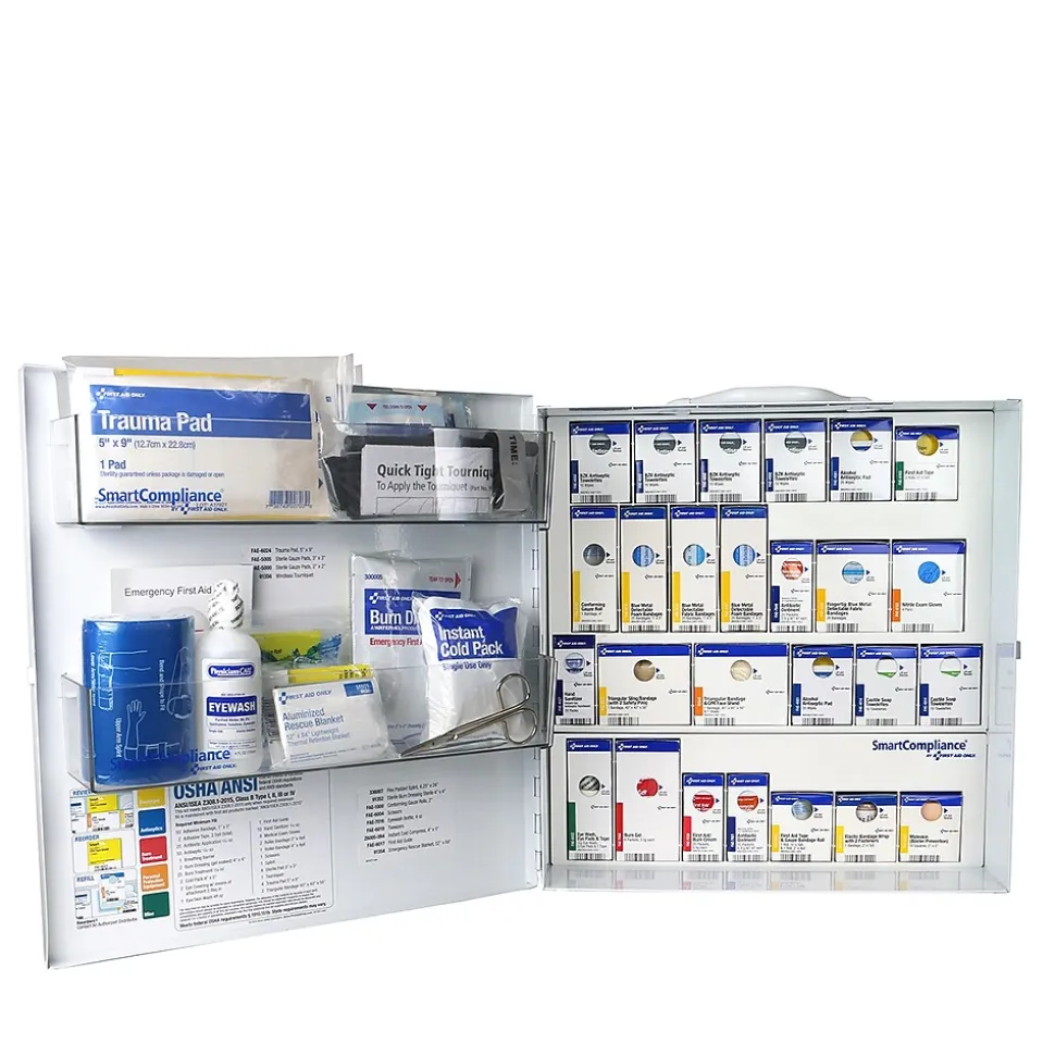 SmartCompliance large metal ANSI B first aid cabinet without medications for food service delivers cost savings and a convenient replenishment system that keeps a business ANSI compliant