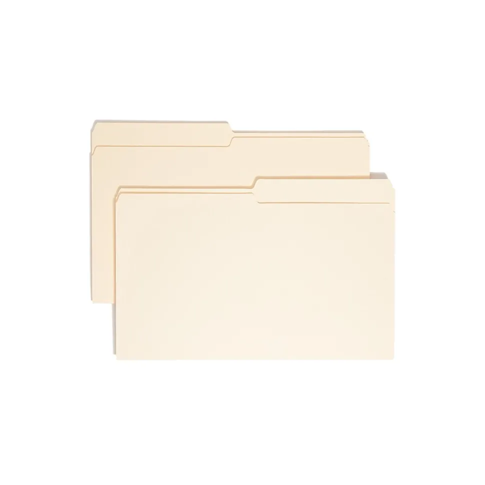 Create an organized filing system with these Smead legal-size manila file folders. The 1/2-cut tab layout provides abundant space for labeling while keeping each tab easy to see, and the sturdy standard thickness paper stock construction stands up to everyday handling in the busiest of offices. With rounded corners, these Smead legal-size manila folders resist catching or tearing on cabinet drawers.