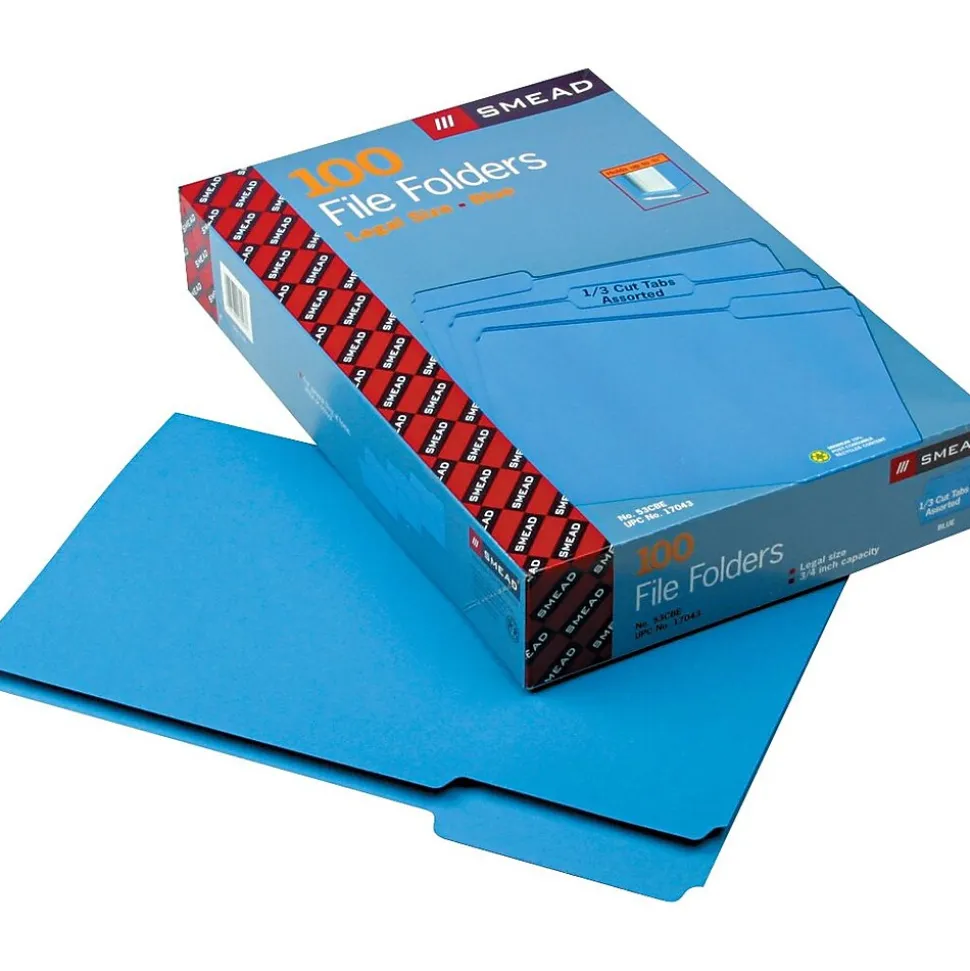 Smead File Folder, 1/3 Cut, Legal Size, Blue, 100/BX (17043)