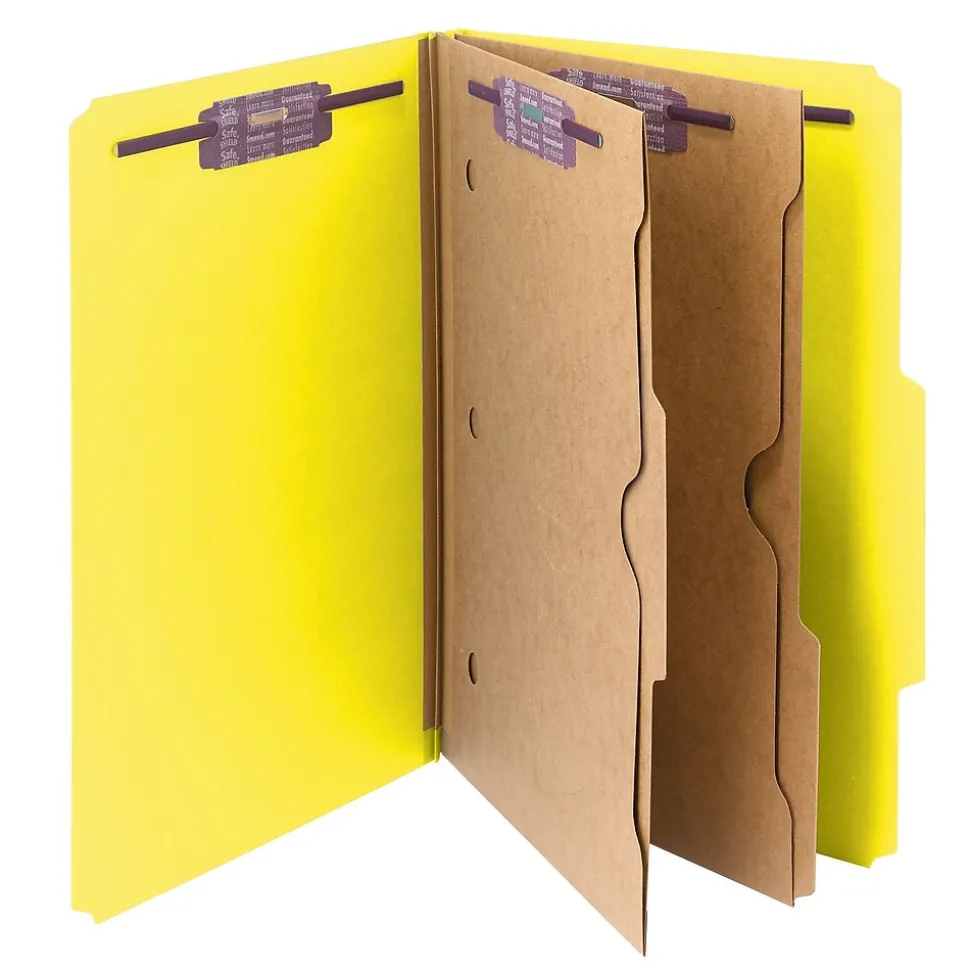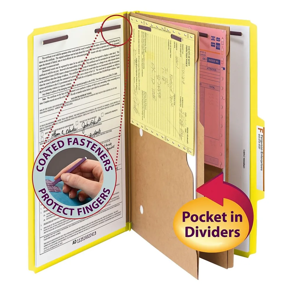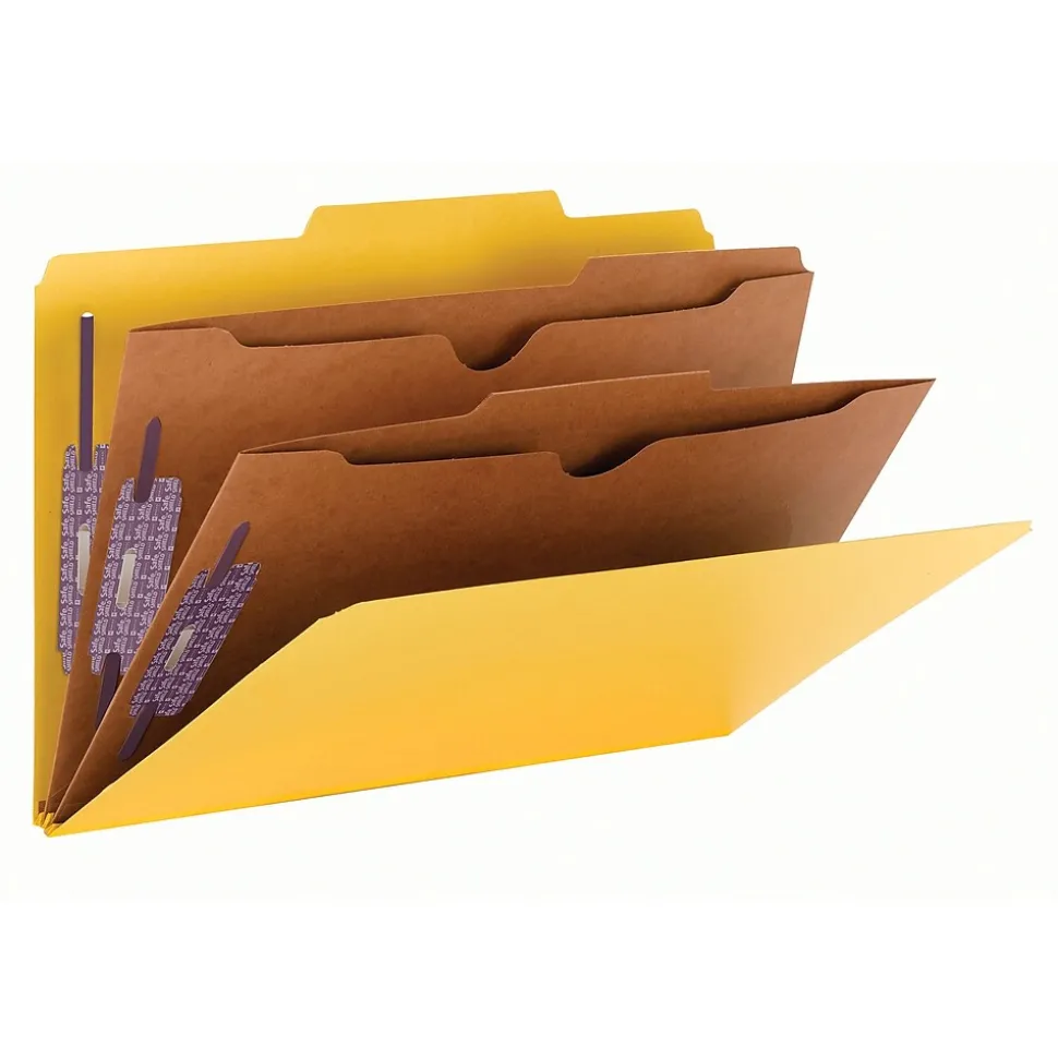 Smead Pressboard Classification File Folder w/Wallet Divider and SafeSHIELD Fasteners, 2″ Exp., Legal, Yellow, 10/Box (19084)