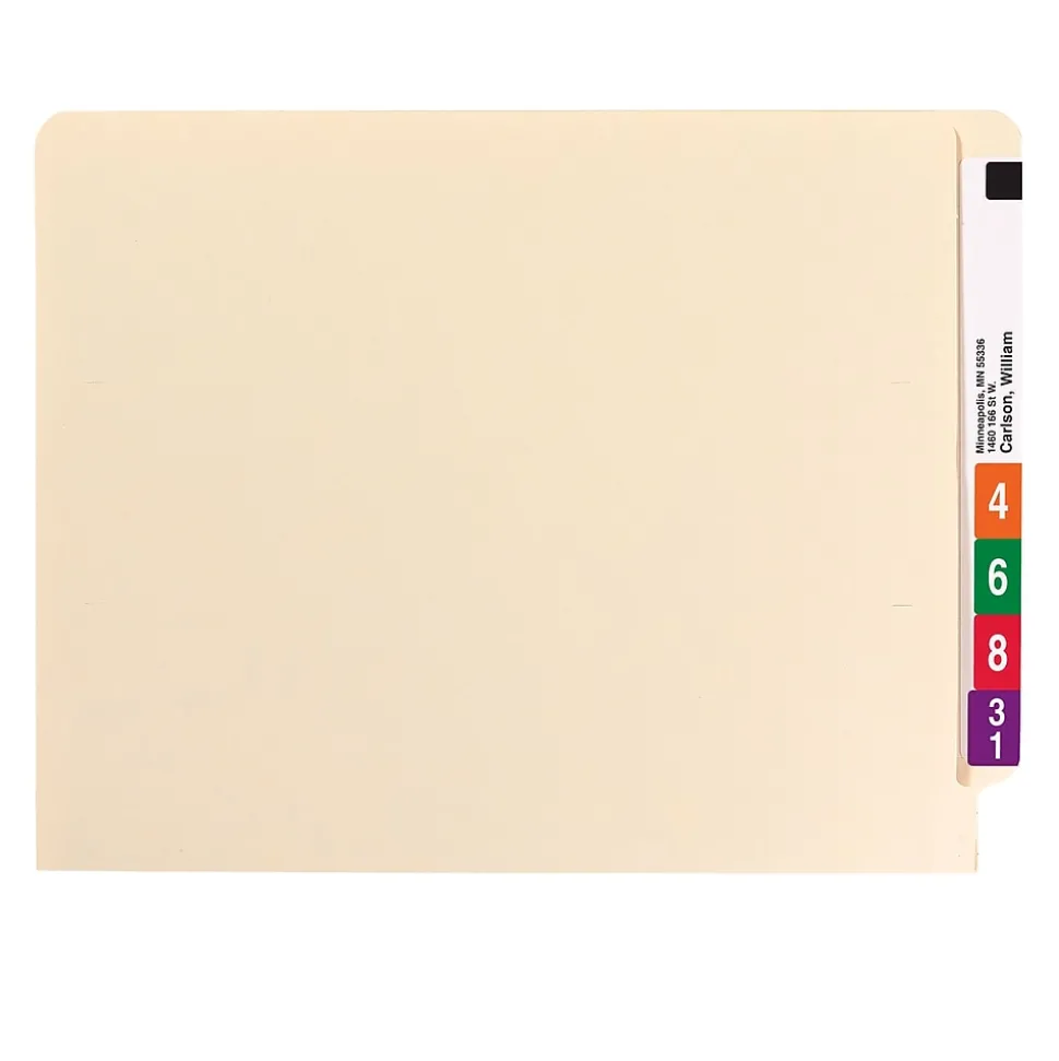 - ESSENTIAL AND RELIABLE: Keep all your important documents organized and secure with these sturdy 11-point manila stock Shelf-Master file folders; double-thick straight-cut 9-1/2” end tabs are extra durable and provide room for multiple labels