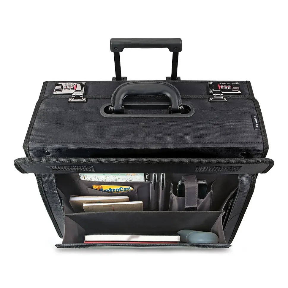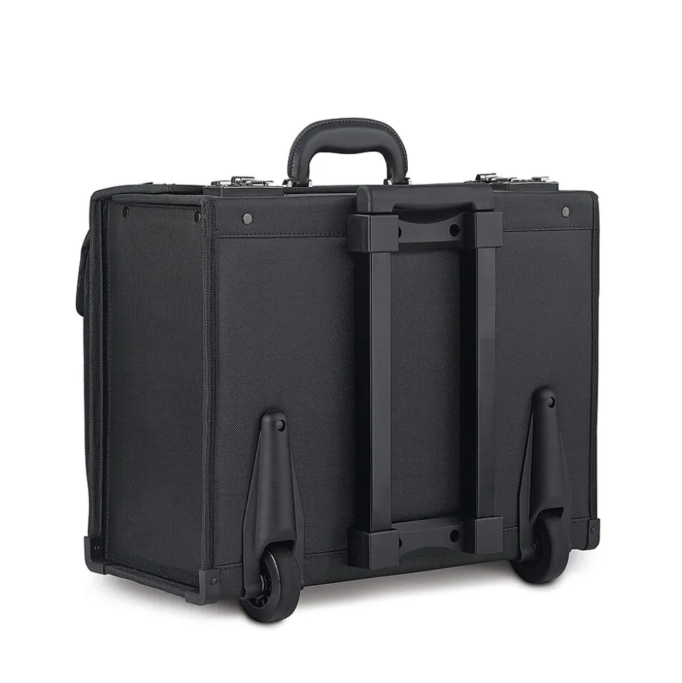 This classic wheeled catalog case has a telescoping handle system and features dual combination locks that can be individually set to keep your laptop and other valuables safe.