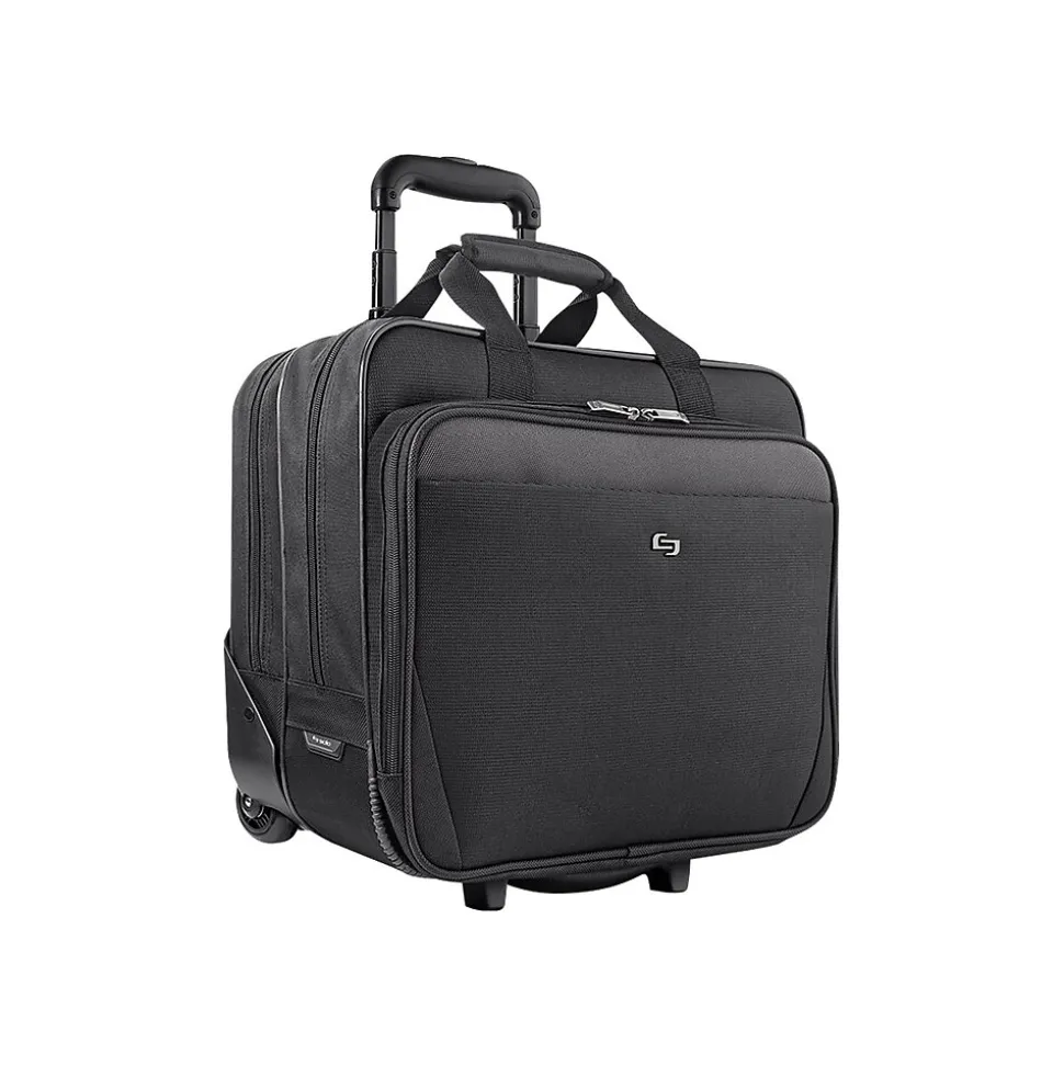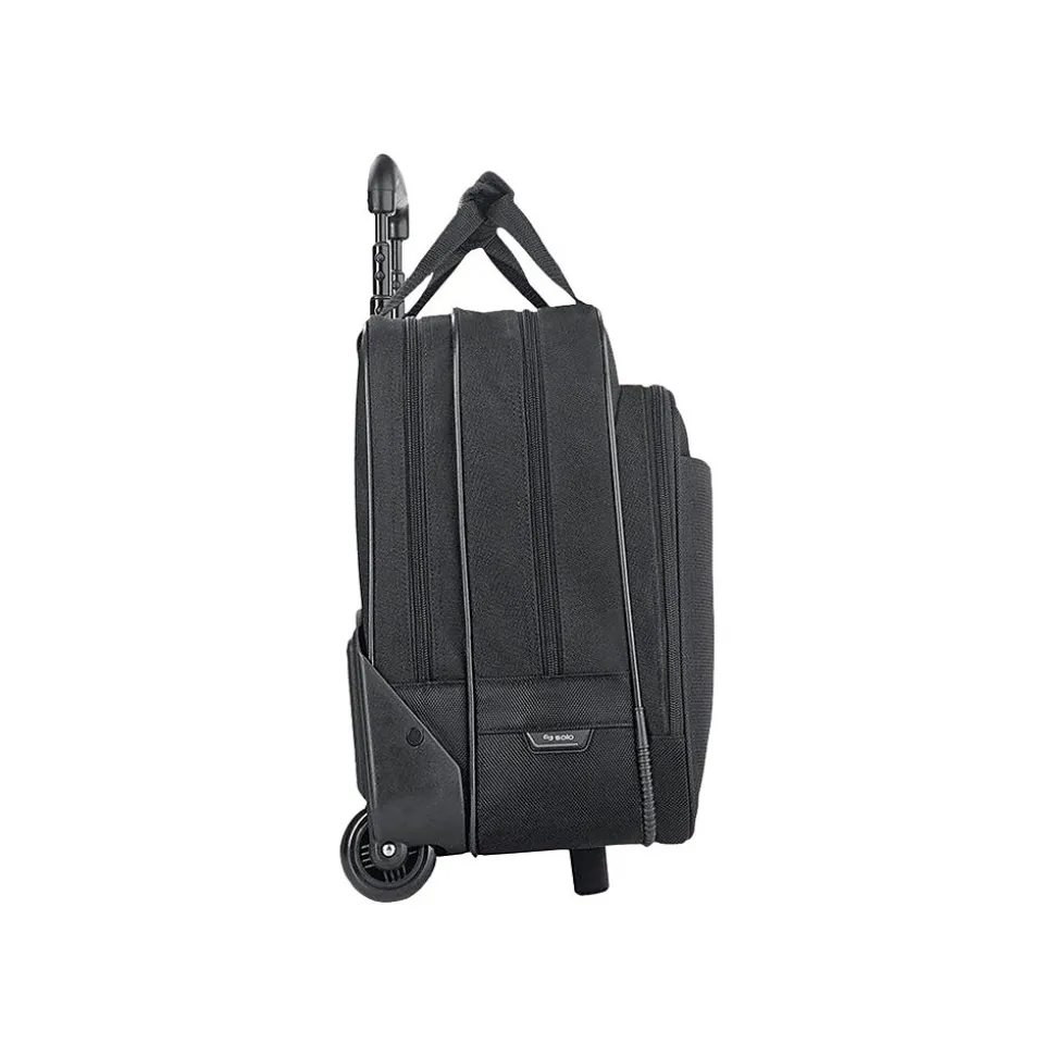 Maneuver your laptop around the airport or throughout the office building with this rolling case. The front pocket and zip-down organizer put travel papers and accessories within easy reach, and the push-button telescoping handle lets you control the bag’s forward motion. This black Solo New York laptop case has a dedicated pocket for a tablet for packing versatility.