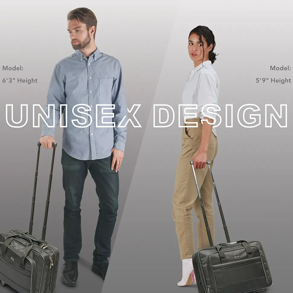 Store personal electronics, files, and other work essentials in this laptop case. The telescoping handle and two rolling casters allow for effortless maneuvering through airports, and the durable construction stands up to repeated use. A padded laptop compartment shields your device from accidental bumps and drops. Featuring a full-size organizer compartment, this Solo New York Carnegie laptop case keeps pens, notepads, and personal items neatly organized.