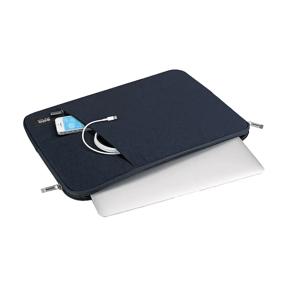 Stylishly protect your laptop with the Solo New York Oswald fully padded laptop sleeve. The sleeve is built with city functionality in mind and offers an uncompromising style. It is designed in urban-cool navy with scratch-resistant lining, zippered main compartment, and front quick-access pockets.