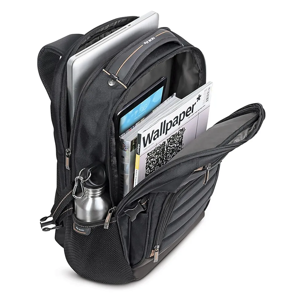 Carry all of your everyday working essentials with ease with these laptop backpacks. Equipped with adjustable shoulder straps, these backpacks hold up to a 17.3″ inch laptop and also have a special compartment for an iPad or other type of tablet. Retrieve larger items from the front storage compartment with ease, and use the front zip-down organizer to better manage your smaller media accessories. Equipped with a Rear Ride Along® strap that slides over your luggage handle, this backpack helps you better manage your bags while traveling.