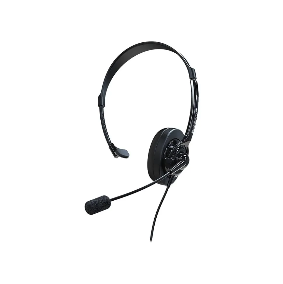 Make teleconferences and video calls more productive with this wired headset. The power of a 40mm speaker helps you hear conversations clearly, while an advanced noise-canceling microphone reduces background noise for better call quality in loud offices. Featuring an adjustable headband and a leatherette ear cushion, this wired headset fits comfortably and stands up to heavy use. This Spracht ZUM wired headset includes 3.5mm and 2.5mm jack pins for connecting to mobile devices, computers, and desk phones with audio jacks.