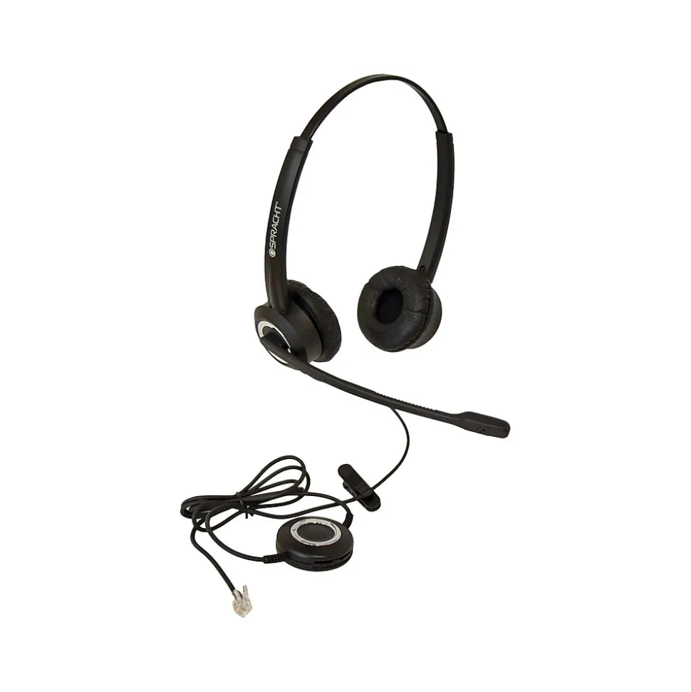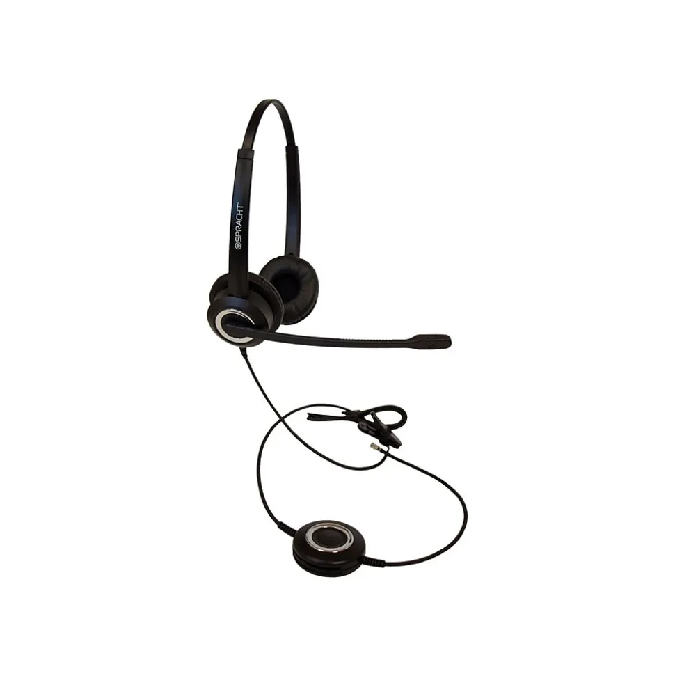 Help customers and clients hear you clearly with this wired headset. Featuring a sturdy headband and two leather-covered foam ear cushions, this wired headset keeps you comfortable during the longest calls. The flexible microphone boom rotates for use on either ear and automatically mutes when tilted 60 degrees, ideal for asking managers questions during calls. This Spracht ZUM wired headset ensures consistently high call quality with a noise-canceling microphone and an advanced broadband audio frequency.