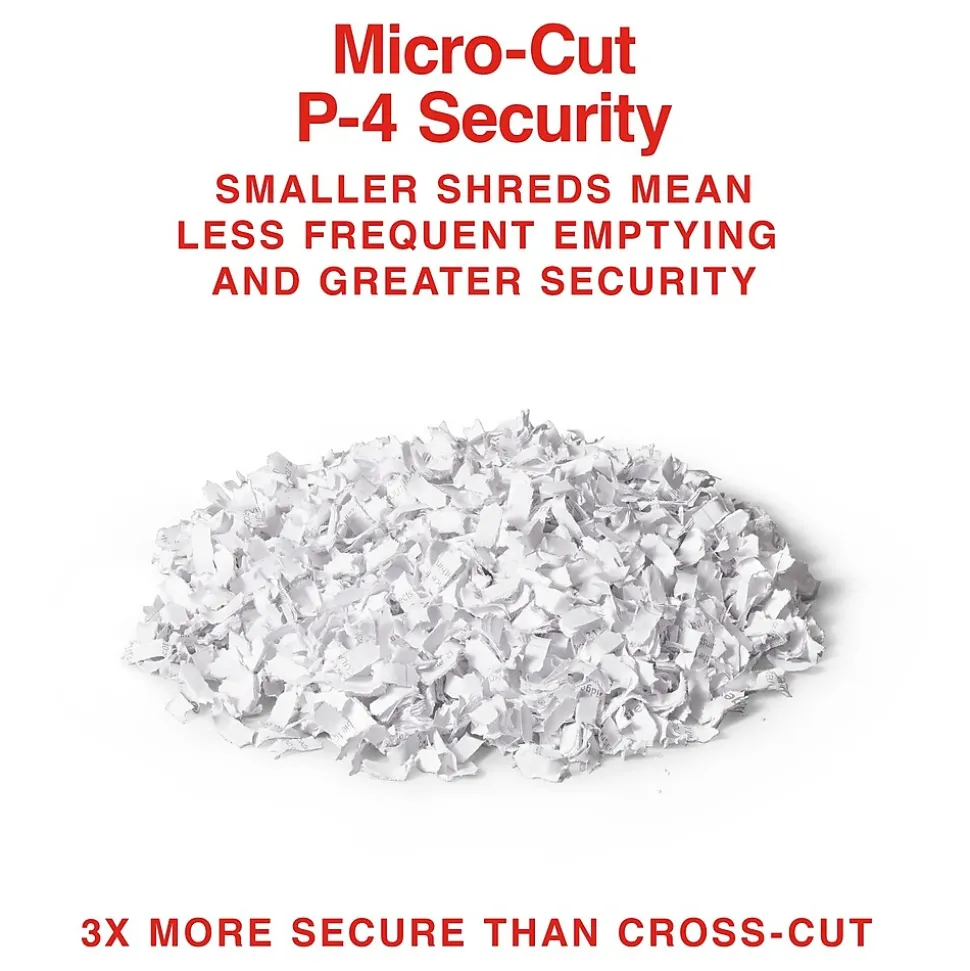 - This Medium-use Staples Micro-Cut Shredder features a step-up in security with a P-4 security rating