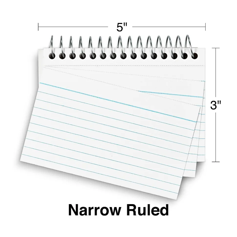 Flip through notes easily with these line ruled spiral-bound index cards. These index cards feature perforations across the top of each card for effortless removal. The printed lines on these Staples Business Essentials 3 x 5-inch index cards feature blank backs for sketches or abstract ideas.