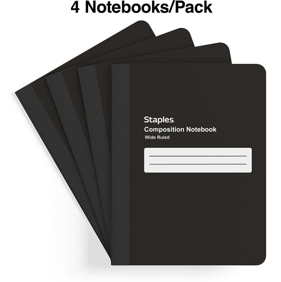 Provide ample space for recording your thoughts with this black poly composition notebook. The wide ruling lets you create clear notes for easy reading, while the poly cover protects the sheets from damage. This Staples 7.5 x 9.75-inch black poly composition notebook features a standard-sized construction, letting you keep notes well organized.