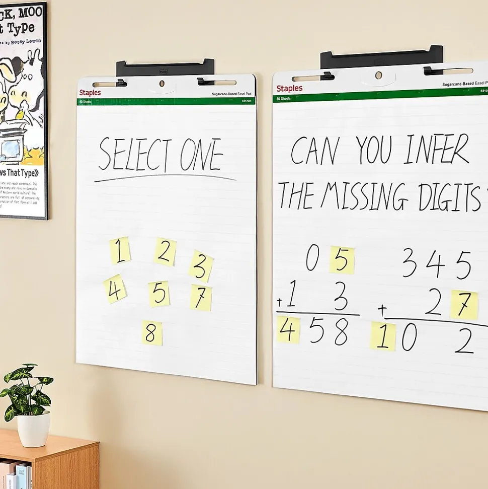 Outfit your classroom, boardroom, or other shared space with these white easel pads. The 1-inch-ruled layout keeps writing neat and legible, while the white color helps marker stand out on the page. Pinhole perforations at the top of each sheet prevent accidental separation, so you can flip back and forth through these Staples easel pads.