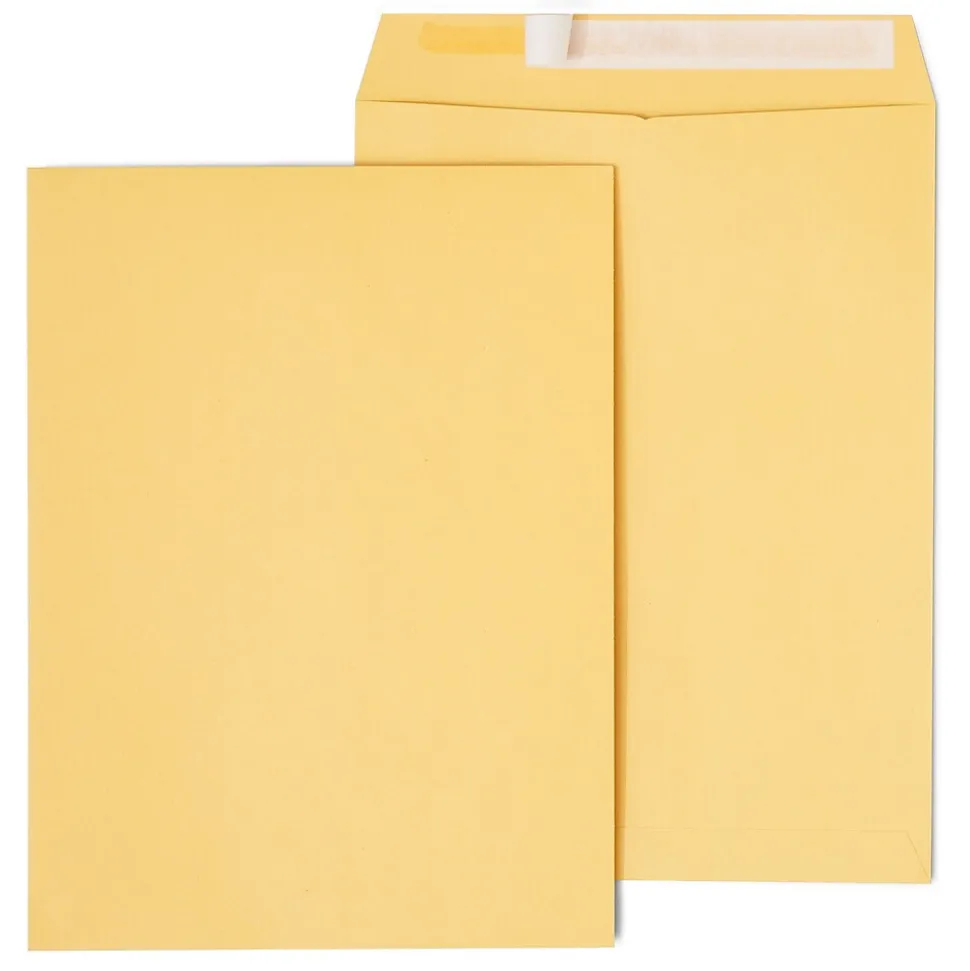 Seal contents safely within these kraft brown catalog envelopes. These envelopes are constructed with 28-pound kraft paper to help prevent damage from puncturing and ripping, and they come in a 250-pack, making them an ideal pick for large mailing tasks. These Staples 9 x 12-inch catalog envelopes have an EasyClose feature that lets you seal them without water.