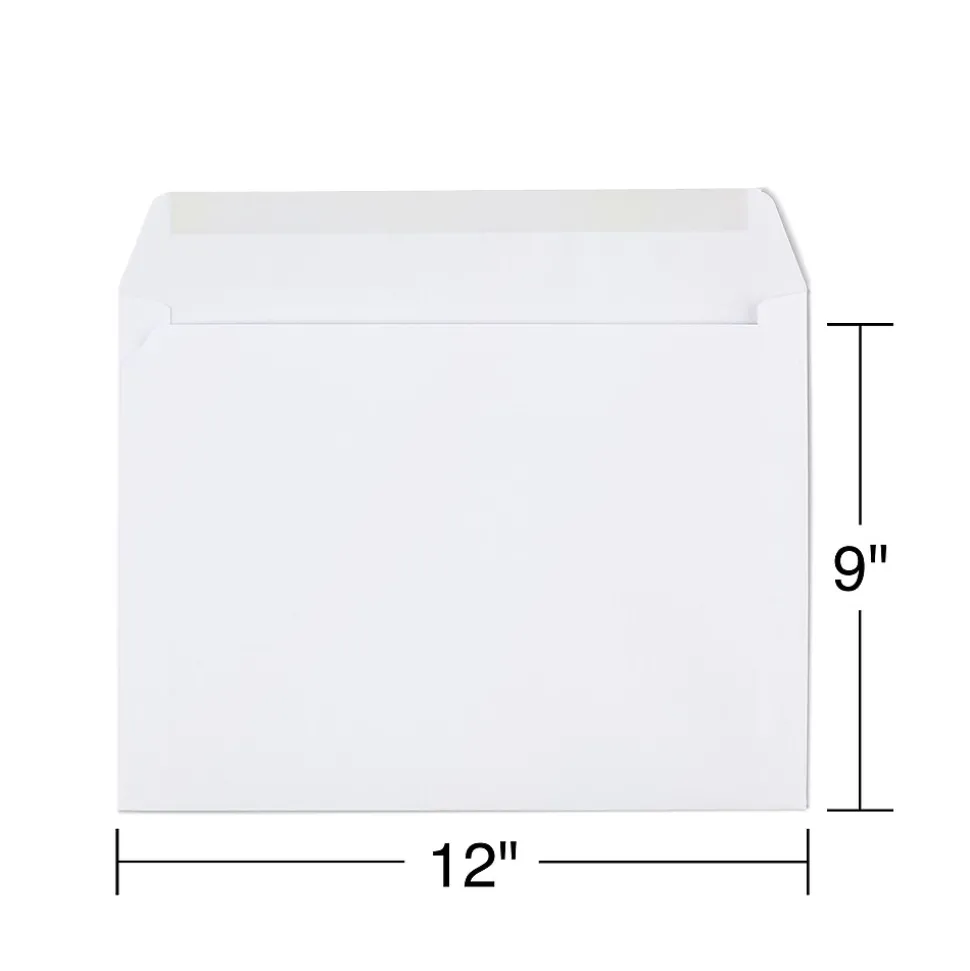Easily ship items with these booklet envelopes. With a 28-pound paper construction, these envelopes are durable, helping get mail shipped safely, while the side-opening flap is heavily gummed, keeping invoices, reports, and other important documents secure. These Staples booklet envelopes are made with white wove paper material, and the side-opening flap is convenient for inserting and removing large items.