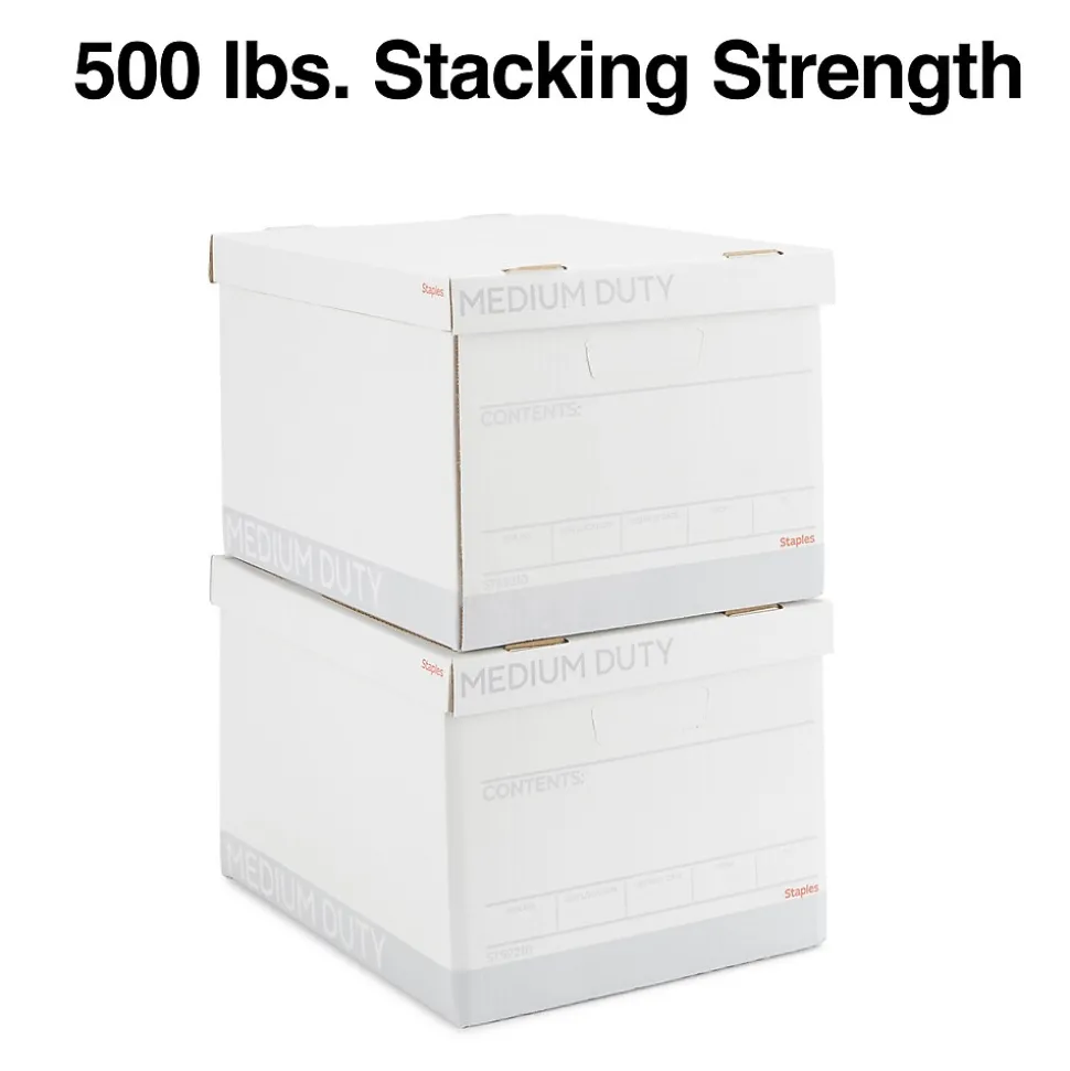 Medium-duty construction for moderate stacking. Easy-fold construction for easy assembly.