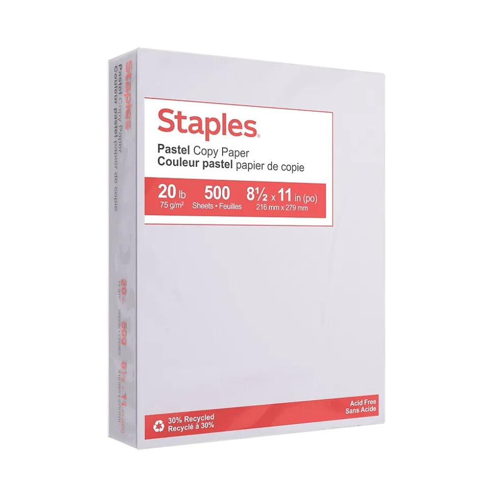 Get a sophisticated look for prints by using this pastel gray colored copy paper. The 20-pound paper quality gives each sheet a thick, high-quality look and feel, and the pages are made with 30%postconsumer recycled material, so this paper is a sound choice for environmentally conscious workplaces. This Staples pastel gray copy paper is easy to install into most fax machines, copiers, printers and other machines.