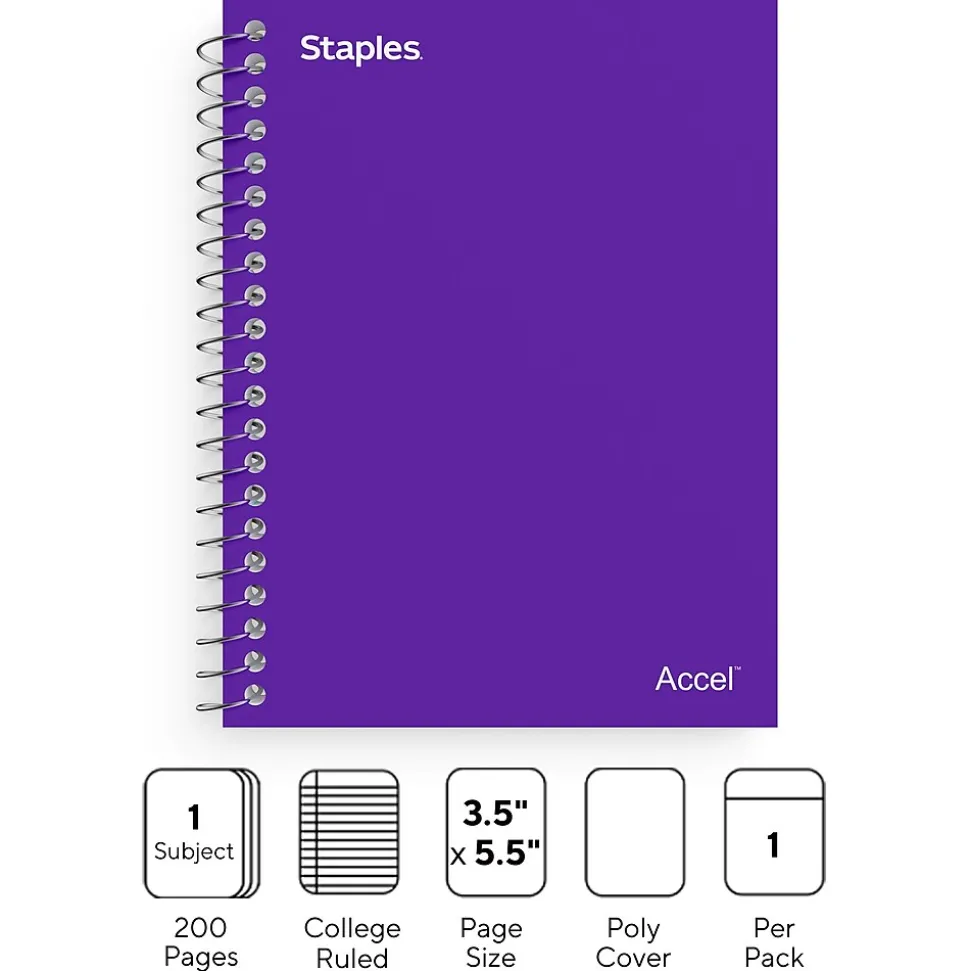 Allocate more pages for your notes this 200-sheet college-ruled premium poly notebook. Convenient perforations let you remove a sheet quickly and cleanly, while the spiral binding offers easy access to information. A durable poly cover withstands daily use and handling. This premium 3.5 x 5.5-inch purple poly notebook has college-ruled pages for optimized and efficient use of space.