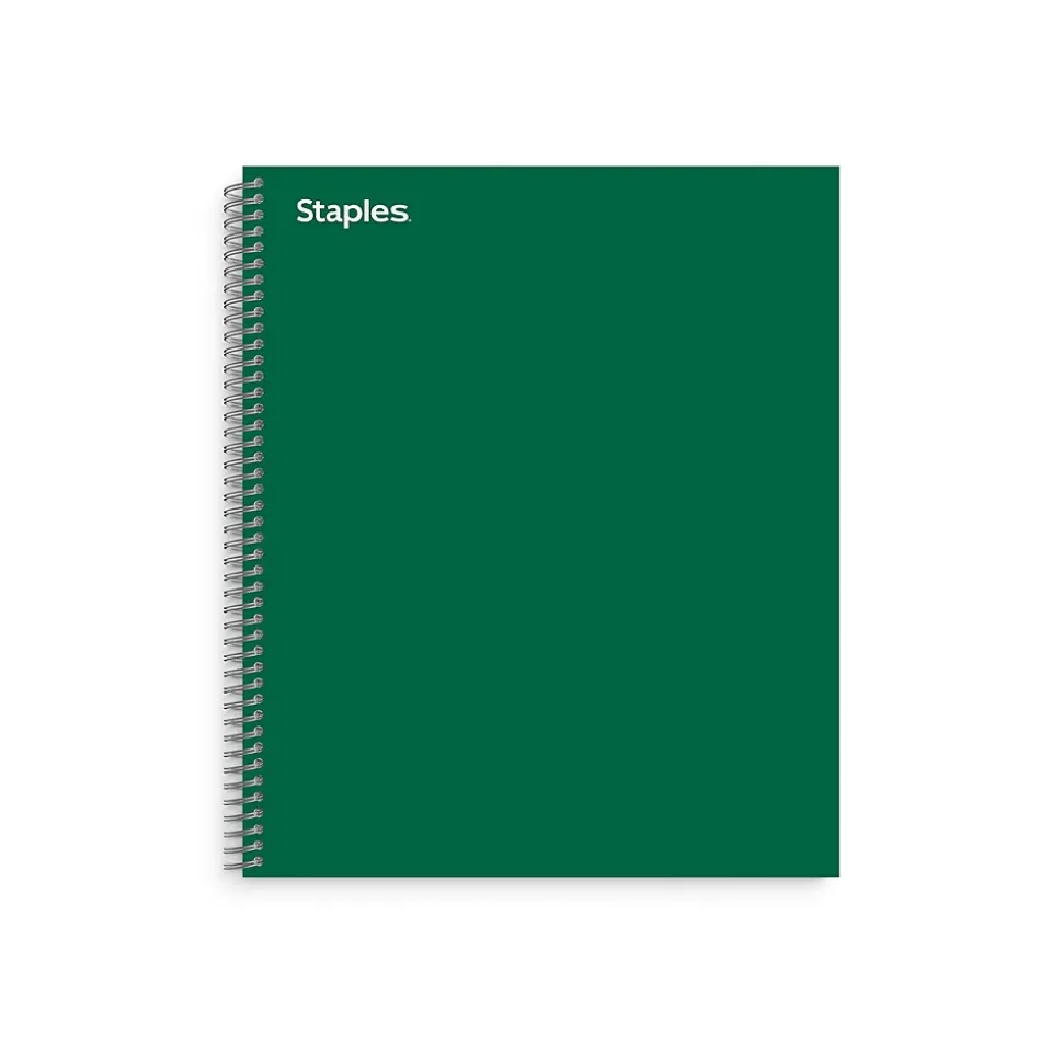 Categorize to-do lists with this 3-subject notebook. The twin-wire spiral spine design simplifies access to the sheets and supports easy page flipping, while the sturdy cover stands up to heavy use. This Staples Premium 8.5 x 11-inch green 3-subject notebook has perforated pages for clean removal to share with others, and the three pocket dividers keep your cards and loose paperwork organized.