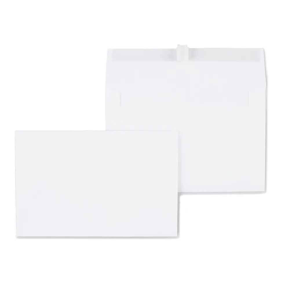 Protect mail with these Staples EasyClose white greeting card envelopes. Each one is easy to close by removing the strip, and these envelopes don’t require licking or a sponge to seal, while the 24-pound white wove paper offers durability and a light background to contrast against dark text and images for strong readability. These Staples EasyClose white invitation envelopes come in a pack of 100, so stocking up the supply closet is simple.