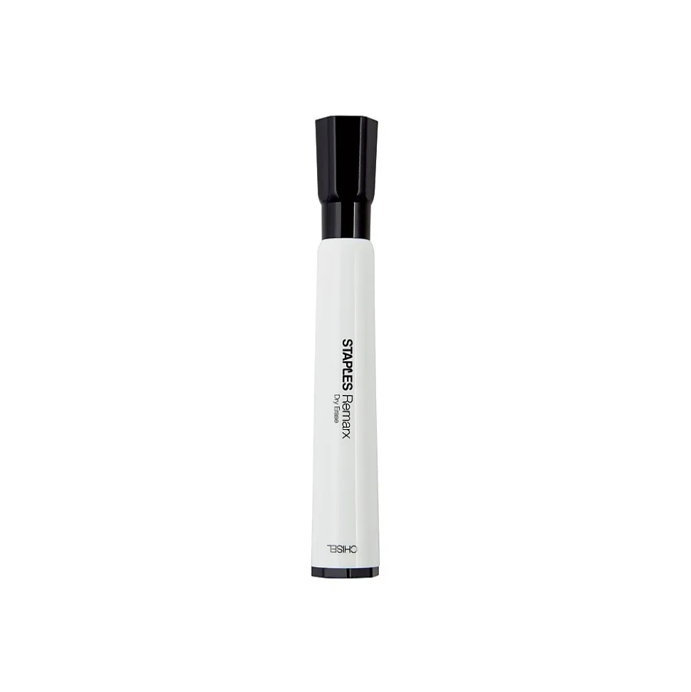 Organize your thoughts or write down quick reminders with these Staples Remarx dry-erase tank markers. The chisel tips let you choose between fine and broad lines, keeping your writing visible on whiteboards of all sizes. The low-odor, nontoxic ink makes these markers ideal for use in classrooms. Featuring rich black ink, these Staples Remarx dry-erase makers ensure your words and drawings are easy to see.