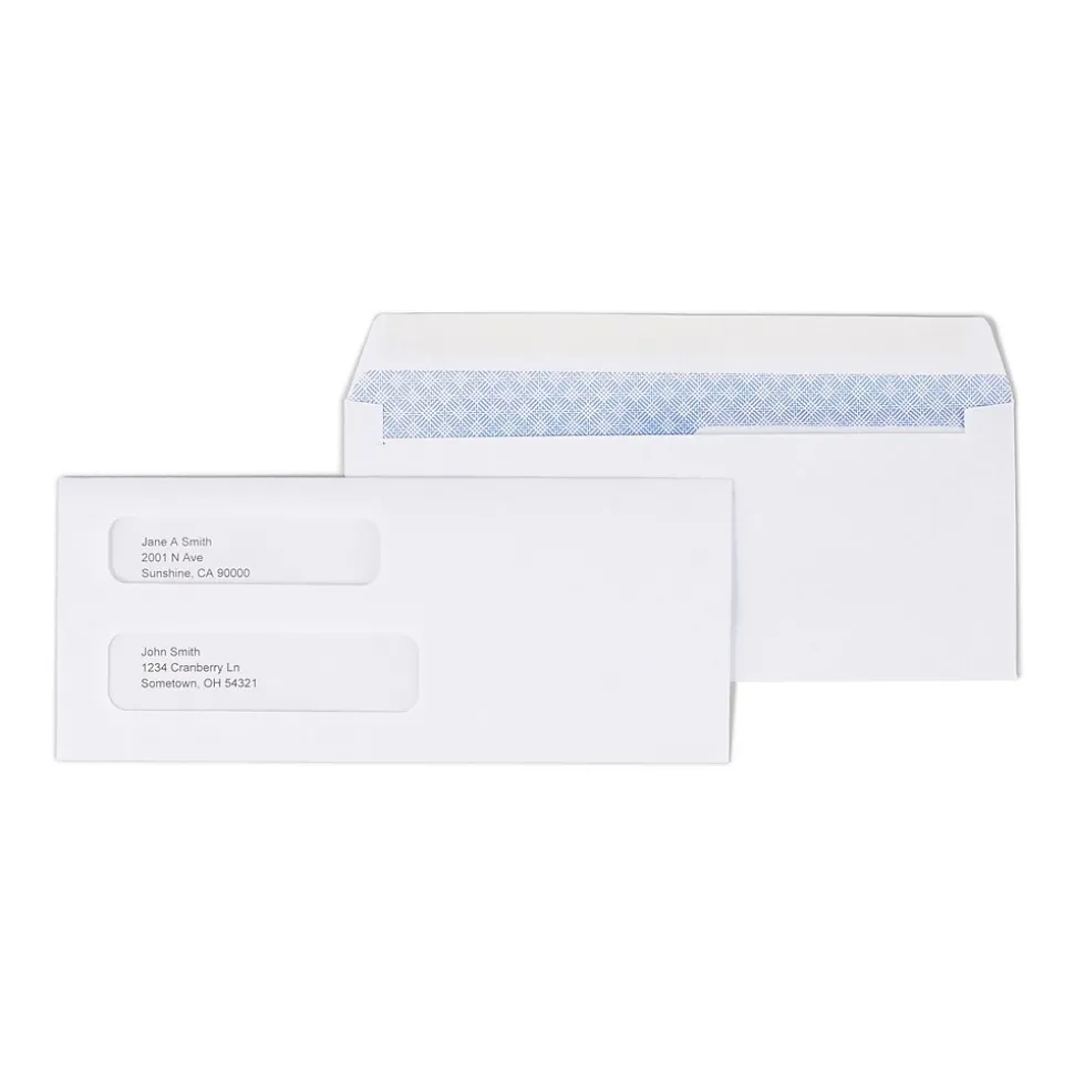 Send payments, rebates and refunds with these Staples check-size envelopes. The security tint keeps dollar amounts and personal information safe from public view, and the gummed closures allow for a secure seal. Featuring conveniently sized sender and recipient windows, these Staples check-size envelopes ensure address information is clearly visible to postal carriers.