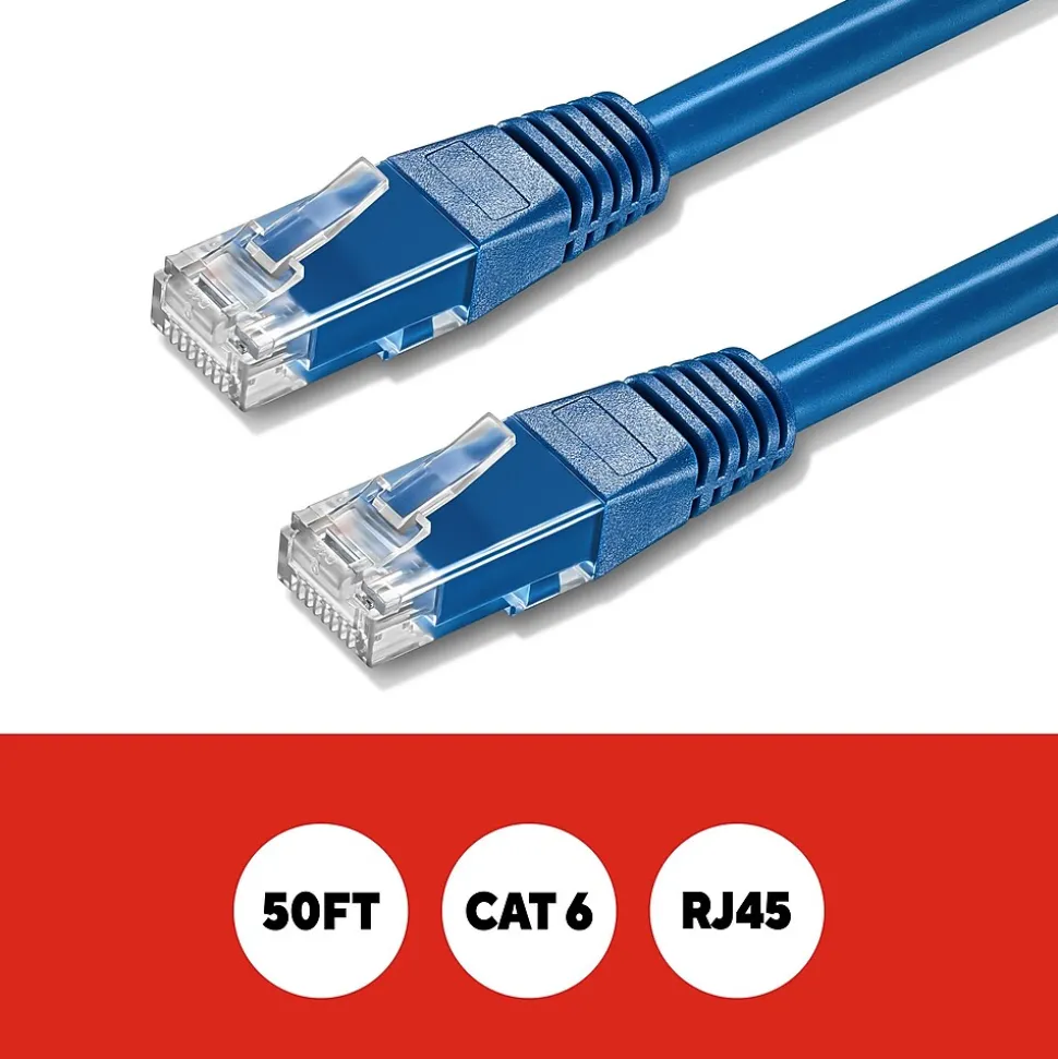Connect high-speed network devices – like modems, PCs, laptops, smart TVs, gaming consoles and more – with this Staples TECH Ethernet cable. The 50-foot cable provides extra length to connect from across the room, while the CAT 6 configuration offers data transfer speeds up to 10Gbps for fast performance. This Staples TECH CAT6 Ethernet cable has snag-free RJ45 connectors for an efficient and stable signal between compatible devices. Backed by Staples Brands 100% satisfaction guarantee, or your money back.
