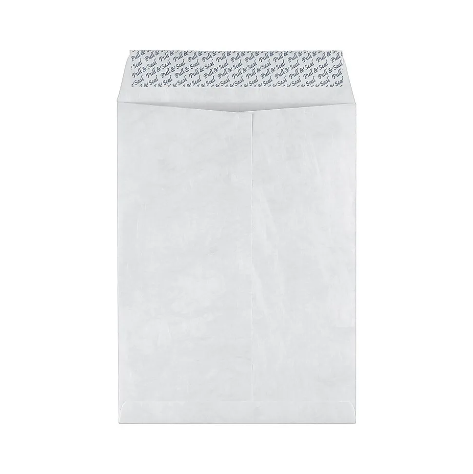 Ship paperwork, advertising materials or products with these Staples Tyvek catalog envelopes. The 14-pound white Tyvek resists tearing, punctures and moisture to protect envelope contents, and lightweight material lets you ship bulky mail without additional packaging weight. The QuickStrip closure of these Staples catalog envelopes provides a secure seal when you remove the strip and press down to close.