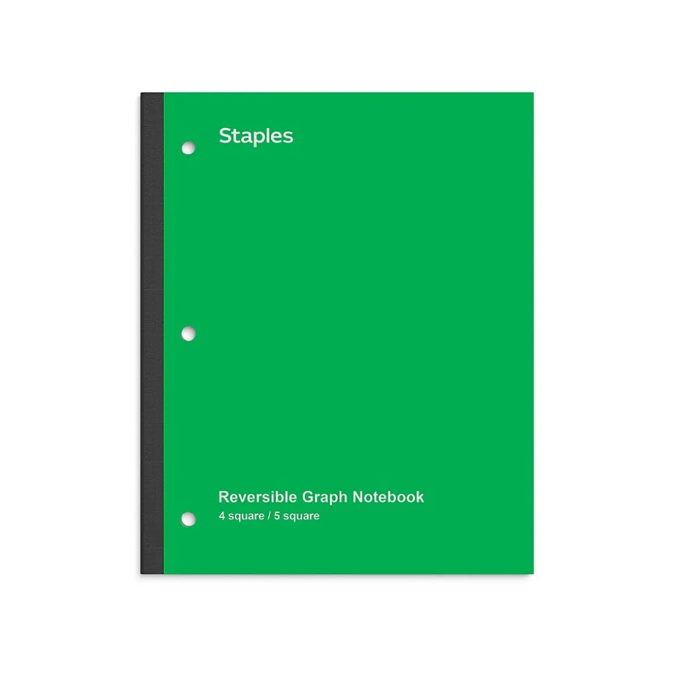 Keep your notes organized with this green reversible graph-ruled notebook. The front and back graph rulings let you sketch and draw diagrams, while the 3-hole punched design and perforated pages make it easy to share notes and transfer pages to binders. This TRU RED Wireless 8.5 x 11-inch green reversible graph-ruled notebook features a wireless spine construction to prevent snagging.