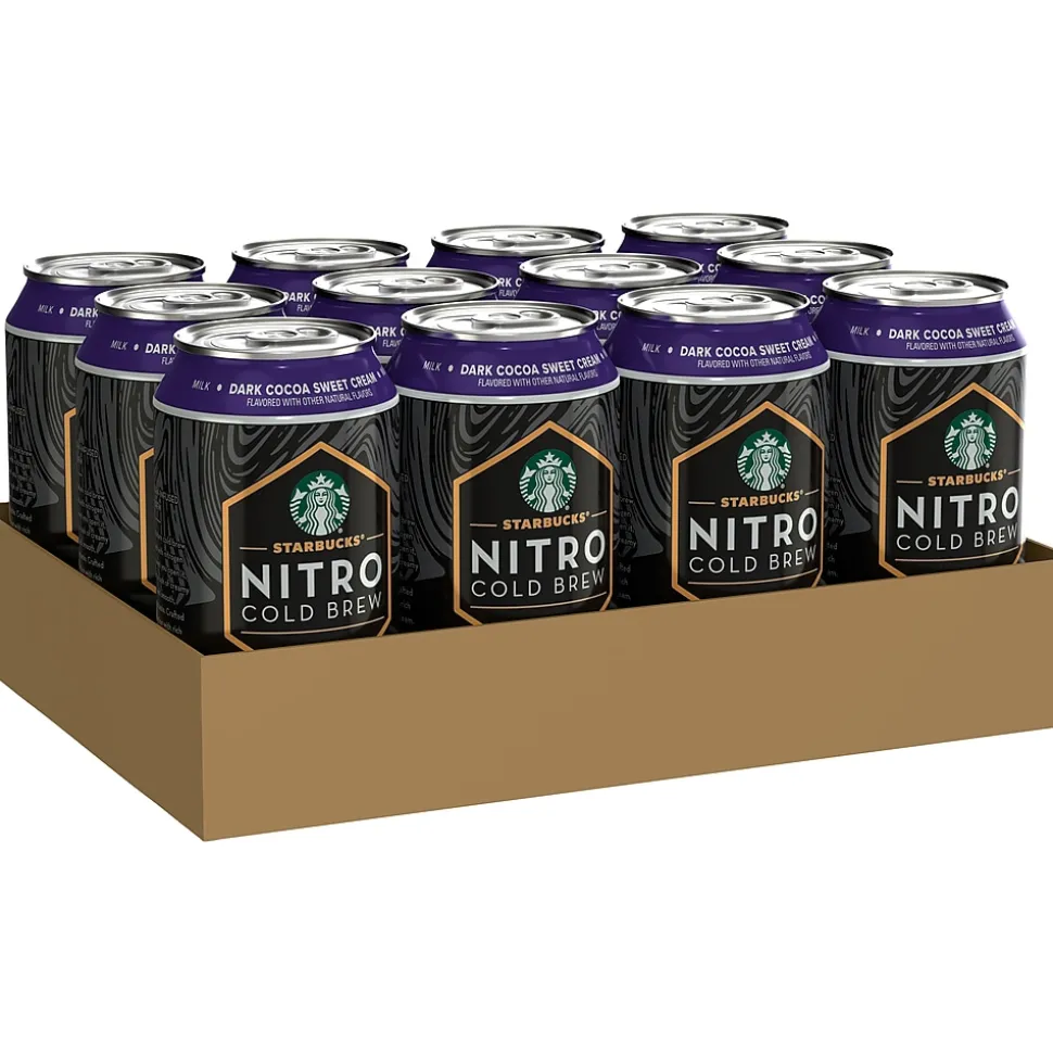 Starbucks Nitro cold brew is infused with Nitrogen the minute you open it, creating a rush of creamy texture and velvety smooth taste. Starbucks started with a premium blend of beans specially selected to brew without heat. Crafted to perfection with rich cocoa flavor and cream.
