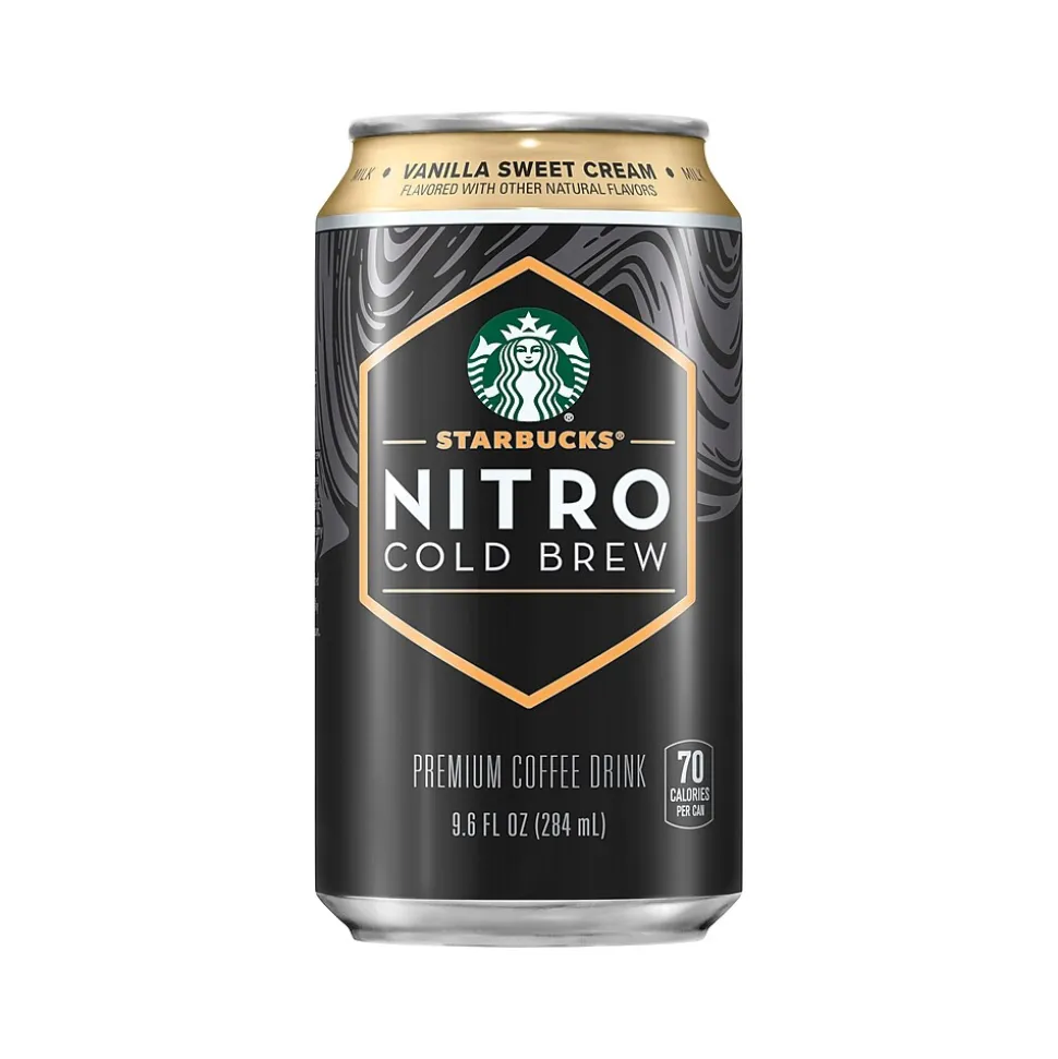 Starbucks Nitro cold brew is infused with nitrogen the minute you open it, creating a rush of creamy texture and velvety smooth taste. Starbucks started with a premium blend of beans specially selected to brew without heat. Then added natural vanilla and fig flavors to enhance the coffee’s complexity, creating a taste that’s smooth, balanced, and subtly sweet.