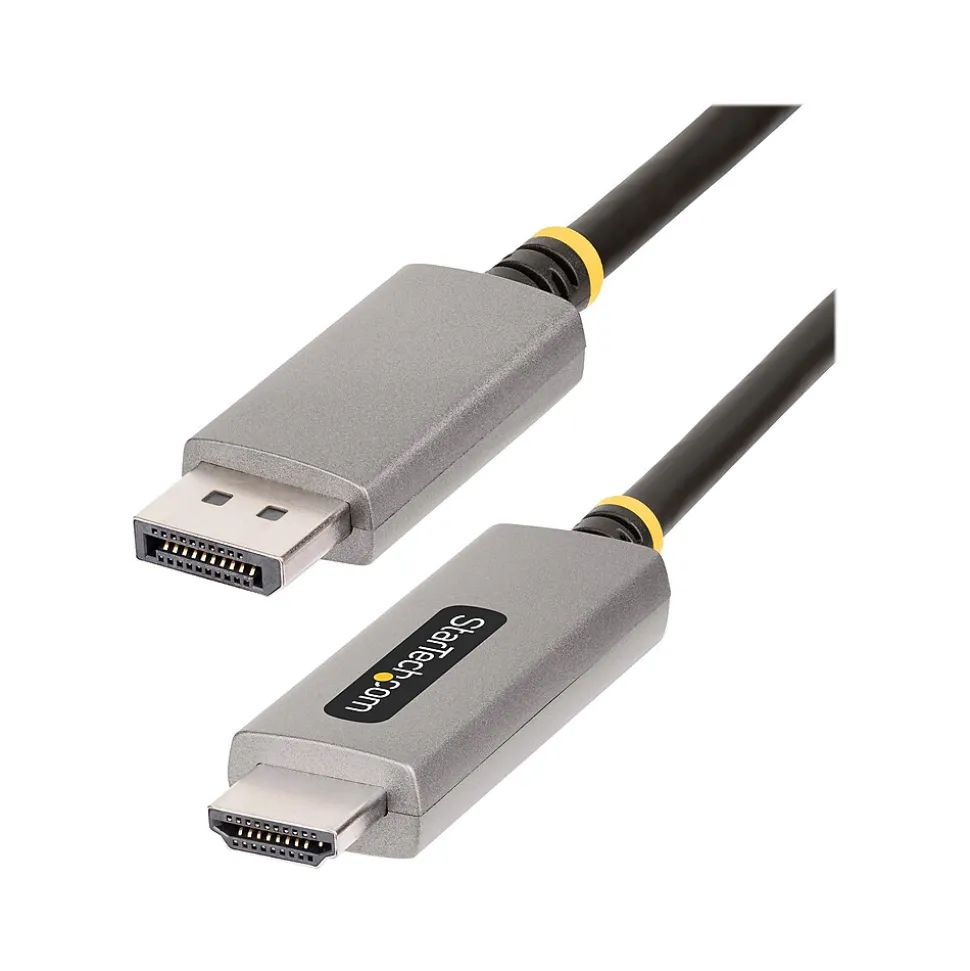 - DisplayPort to HDMI adapter cable connects a DisplayPort-enabled desktop to an 8K 60Hz/4K 144Hz HDMI display