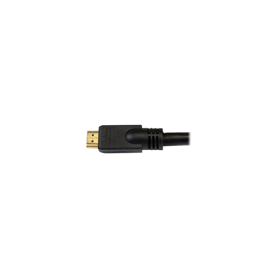 StarTech.comĀ® Black high-speed HDMI cable enables you to connect high-definition LCD TVs, LCD projectors, plasma TVs, HDTVs and DVD players. The 20′ cable carries high-definition video and audio simultaneously thus providing hassle-free wiring connection. It is made of flexible as well as fire retardant PVC to ensure maximum bending and to prevent any fatal fire accident. The 28 AWG conductor of the cable has aluminum-mylar foil with braid shielding to secure data from electromagnetic and radio frequency interference. Gold-plated straight connectors prevent signal loss due to oxidation or corrosion.
