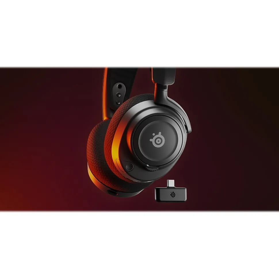 - Bring the Arctis Nova 7 to your favorite platform, such as PC, Mac, PlayStation, or Switch, with a pocket-size USB-C dongle for lag-free Quantum 2.0 Wireless (USB-A adapter included)
