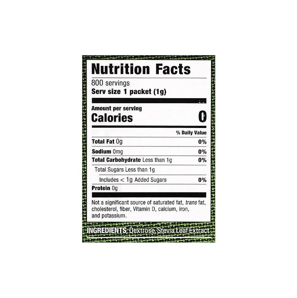 - Ingredients: dextrose and stevia leaf extract