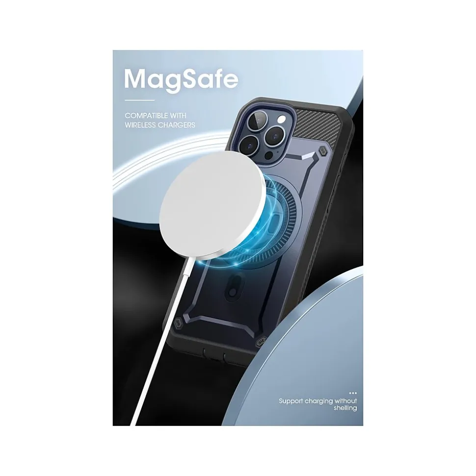 The SUPCASE Unicorn Beetle PRO MAG rugged case ensures full-body protection for your iPhone 15 Pro (6.1″ screen). Made of scratch-resistant polycarbonate with TPU bumpers, this single-piece snap-on case safeguards your phone from drops and scratches.
