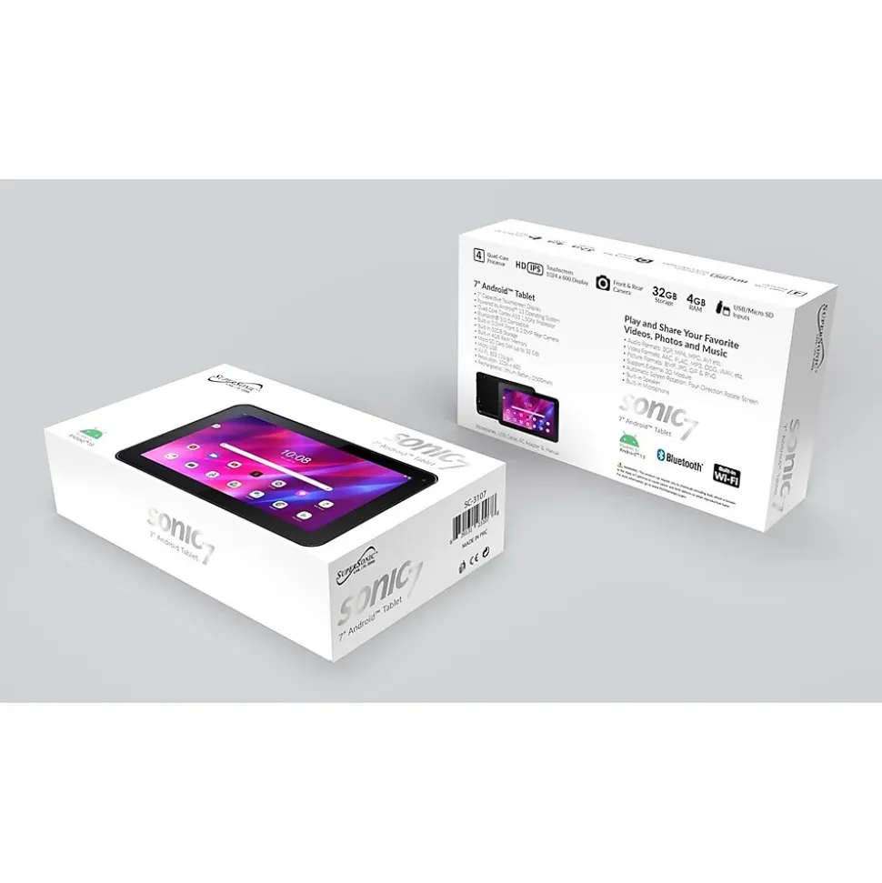 Supersonic Sonic7 7" Tablet, WiFi & Cellular, 32GB Storage, Android 13, Black (SC-3107)