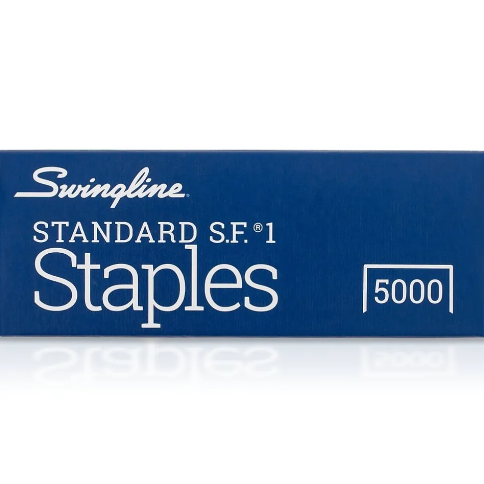A seven-point quality check ensures Swingline Standard Staples deliver dependable performance. The sharp chisel point on each staple leg guarantees less jamming and secure paper fastening. Choose these dependable staples for 15% fewer misforms than the competition. 1/4″ leg length, 210 staples per strip, 5,000 per box. Silver.