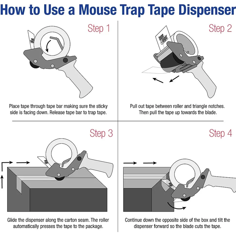 Tape Logic™ 2″ Mousetrap carton sealing tape dispenser is constructed from reinforced steel and high impact plastic. Dispenser has a rubber tape roller that provides smooth tape release.