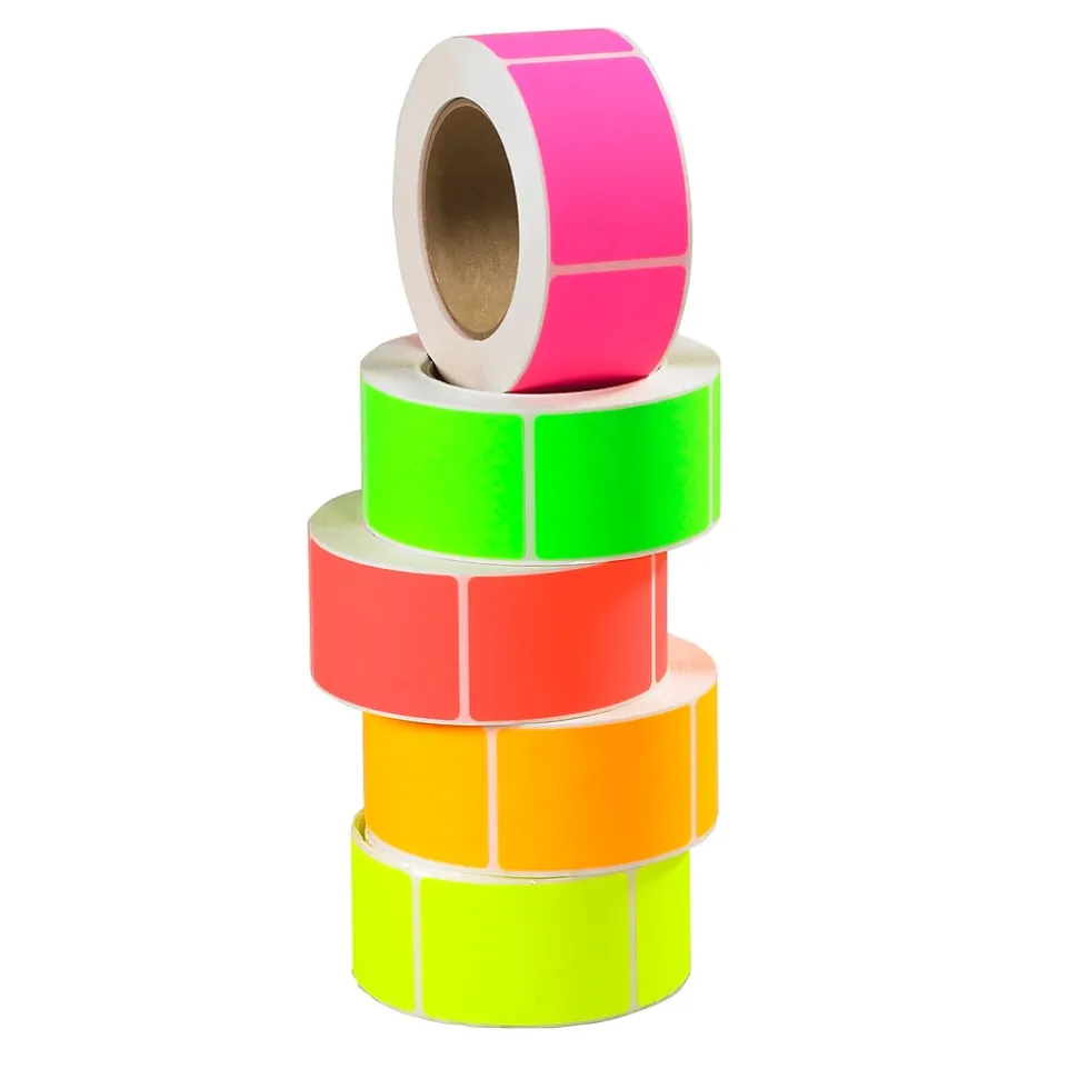 - One pack includes 1,000 labels of each of the five fluorescent colors