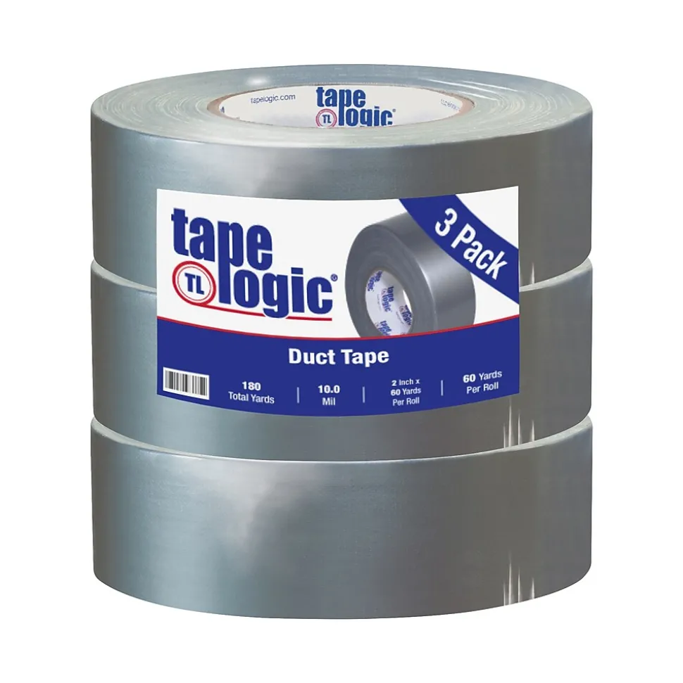 Tape Logic™ Industrial cloth duct tape in silver color measures 2″ x 60 yds and offers 18 percent elongation at break. Tape is designed to use in wrapping or sealing applications and sold as 3 per pack.
