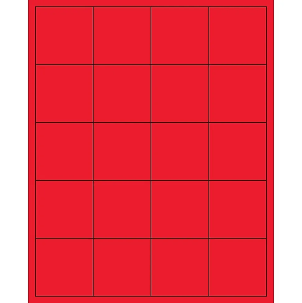 2″ x 2″Fluorescent Red Rectangle Laser Labels. Use to create your own product or mailing labels. Labels work with both Laser and ink jet printers. Permanent adhesive. Labels stick to a variety of smooth surfaces including paper, corrugated, plastic, wood, glass and metal.