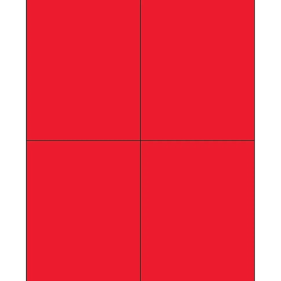 4 1/4″ x 5 1/2″ Fluorescent Red Rectangle Laser Labels. Use to create your own product or mailing labels. Labels work with both Laser and ink jet printers. Permanent adhesive. Labels stick to a variety of smooth surfaces including paper, corrugated, plastic, wood, glass and metal.