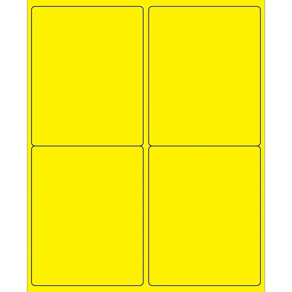 4″ x 5″ Fluorescent Yellow Rectangle Laser Labels. Use to create your own product or mailing labels. Labels work with both Laser and ink jet printers. Permanent adhesive. Labels stick to a variety of smooth surfaces including paper, corrugated, plastic, wood, glass and metal.