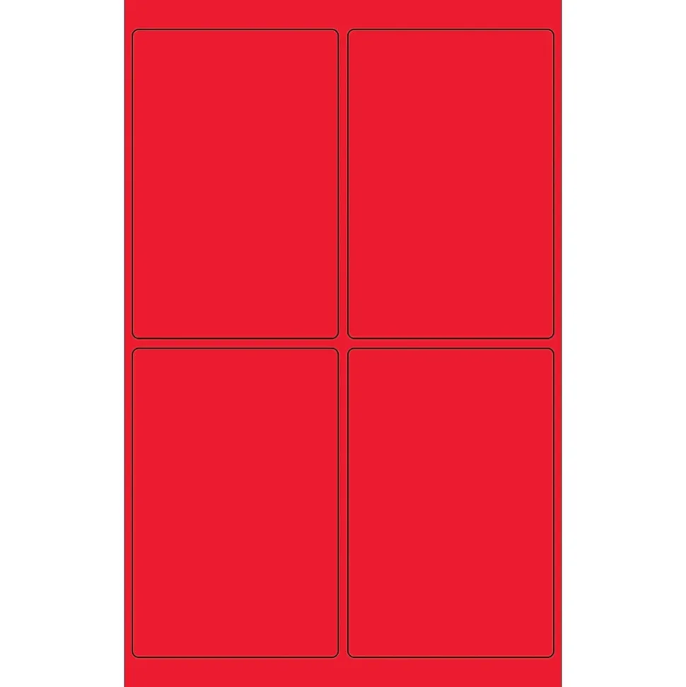 4 x 6″ Fluorescent Red Rectangle Laser Labels. Use to create your own product or mailing labels. Labels work with both laser and ink jet printers. Permanent adhesive. Labels stick to a variety of smooth surfaces including paper, corrugated, plastic, wood, glass and metal.