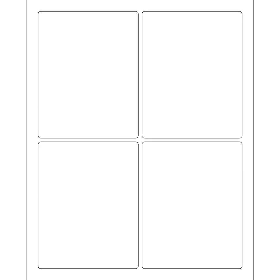 3 3/4 x 4 3/4″ White Rectangle Laser Labels. Use to create your own product or mailing labels. Labels work with both laser and ink jet printers. Permanent adhesive. Labels stick to a variety of smooth surfaces including paper, corrugated, plastic, wood, glass and metal.