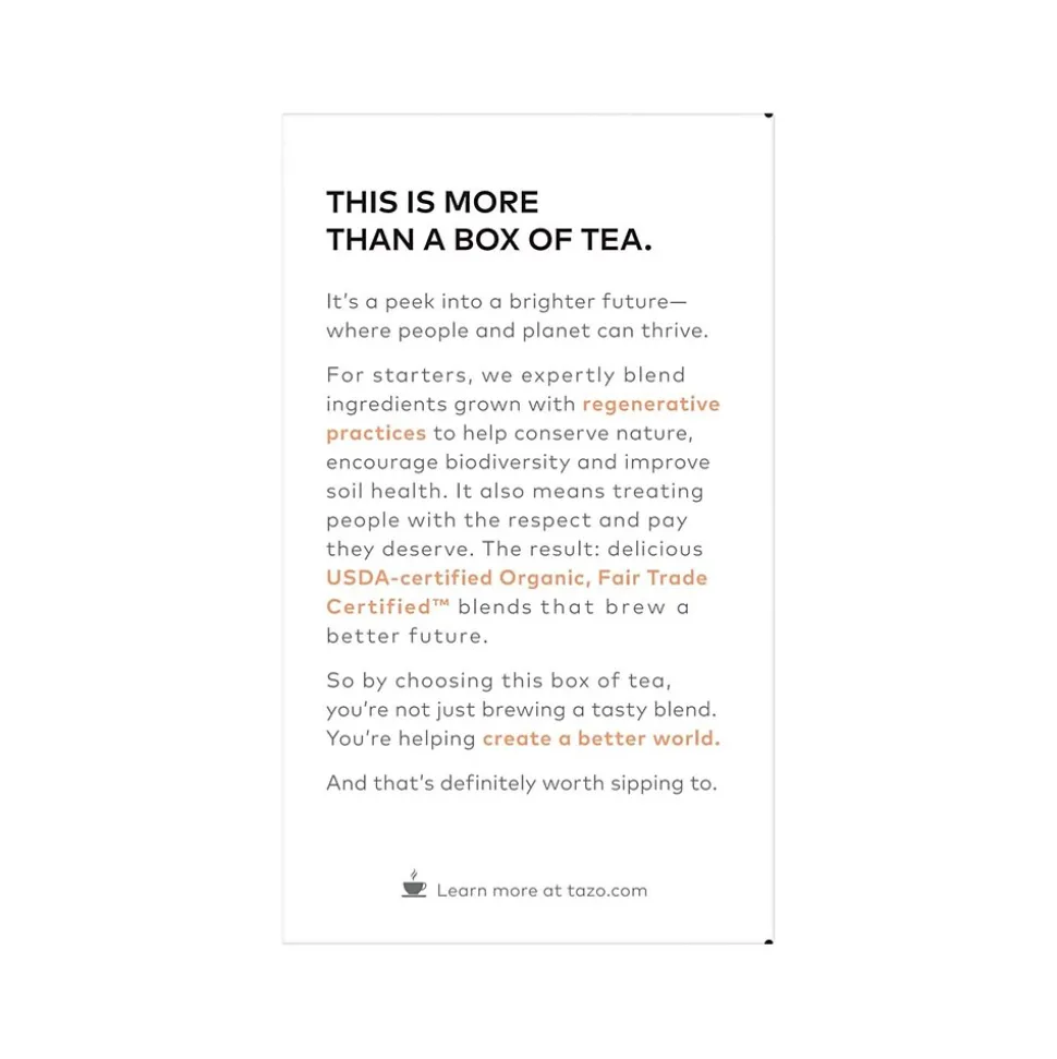 The Tazo Calm regenerative organic Chamomile tea is a relaxing herbal blend that combines chamomile, rose petals, lemon balm, and peppermint.