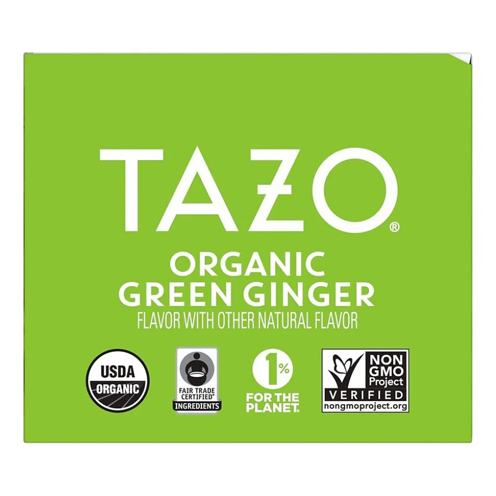 The Tazo Green Ginger regenerative organic tea is a bright green tea with a kick of ginger spice and a burst of sweet pear notes for an unexpected twist.
